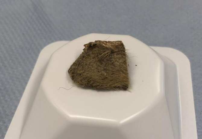 El trozo de tejido de rinoceronte lanudo que fue encontrado dentro del estómago del lobo de Tumat. (Foto: Love Dalén / Stockholm University)